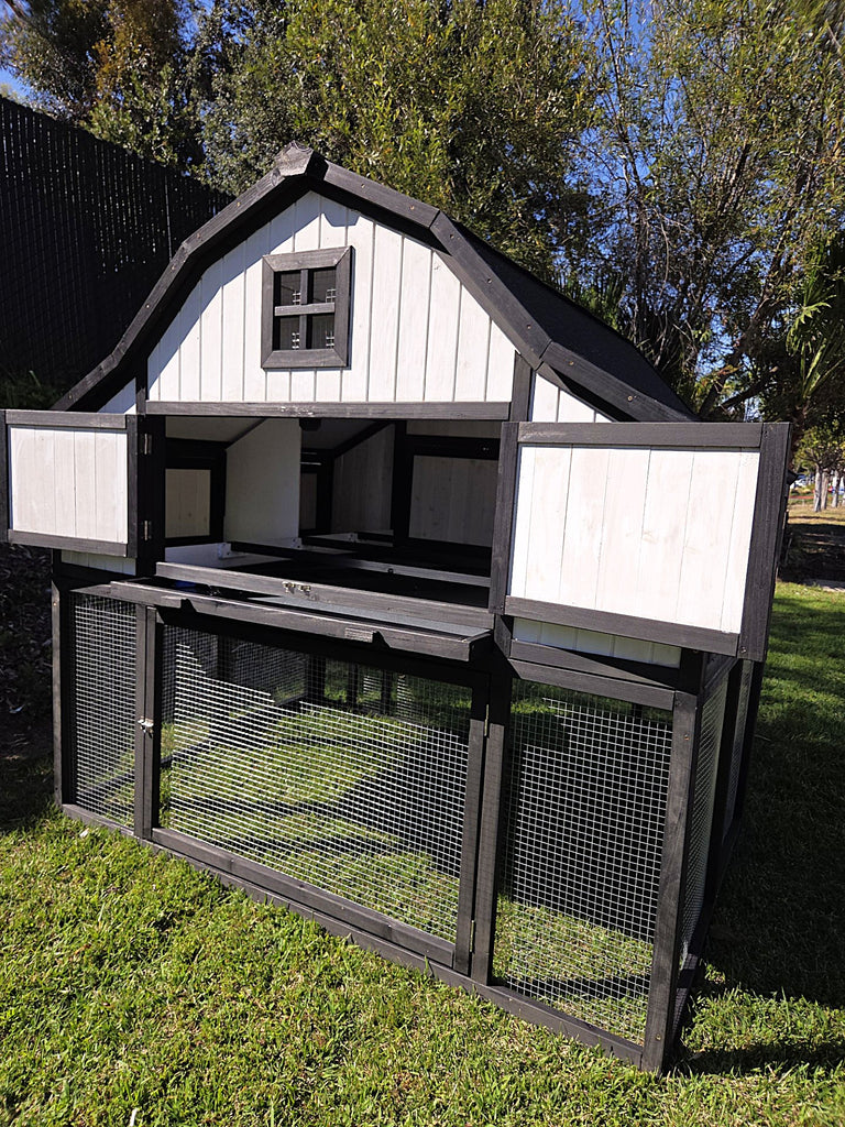 Any accessories or additions in images are not included. Purchase is for wood coop only.